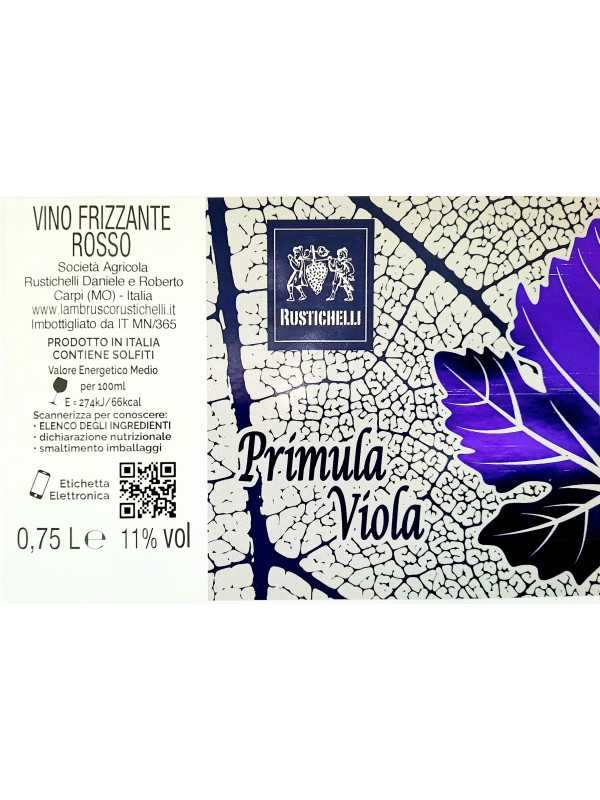 Vino rosso frizzante ottenuto da uve Lambrusco Salamino per un 40%- Ancellotta 25% - Lambrusco Maestri 25% - Lambrusco Marani 10% coltivate nella nostra Azienda Agricola prodotto tramite una vinificazione tradizionale in rosso con macerazione a freddo sulle vinacce per circa 3 giorni e successiva presa di spuma con metodo charmat di circa 20-25 giorni - 11% vol
